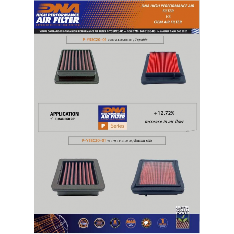 Ένα ακόμη νέο φίλτρο αέρος υψηλής απόδοσης της DNA είναι πλέον στην διάθεσή μας και ταιριάζει στα παρακάτω μοντέλα Yamaha:- T-MAX 530 2017-2019