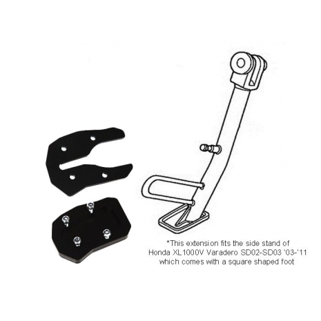 ** Η επέκταση είναι δοκιμασμένη σε Honda Varadero MK2 '03-'07 και ΜΚ3 '08> και είναι πλήρως συμβατή με όλα τα δημοφιλή διπλά σταντ της αγοράς: Honda, SW-Motech και Hepco & Beker